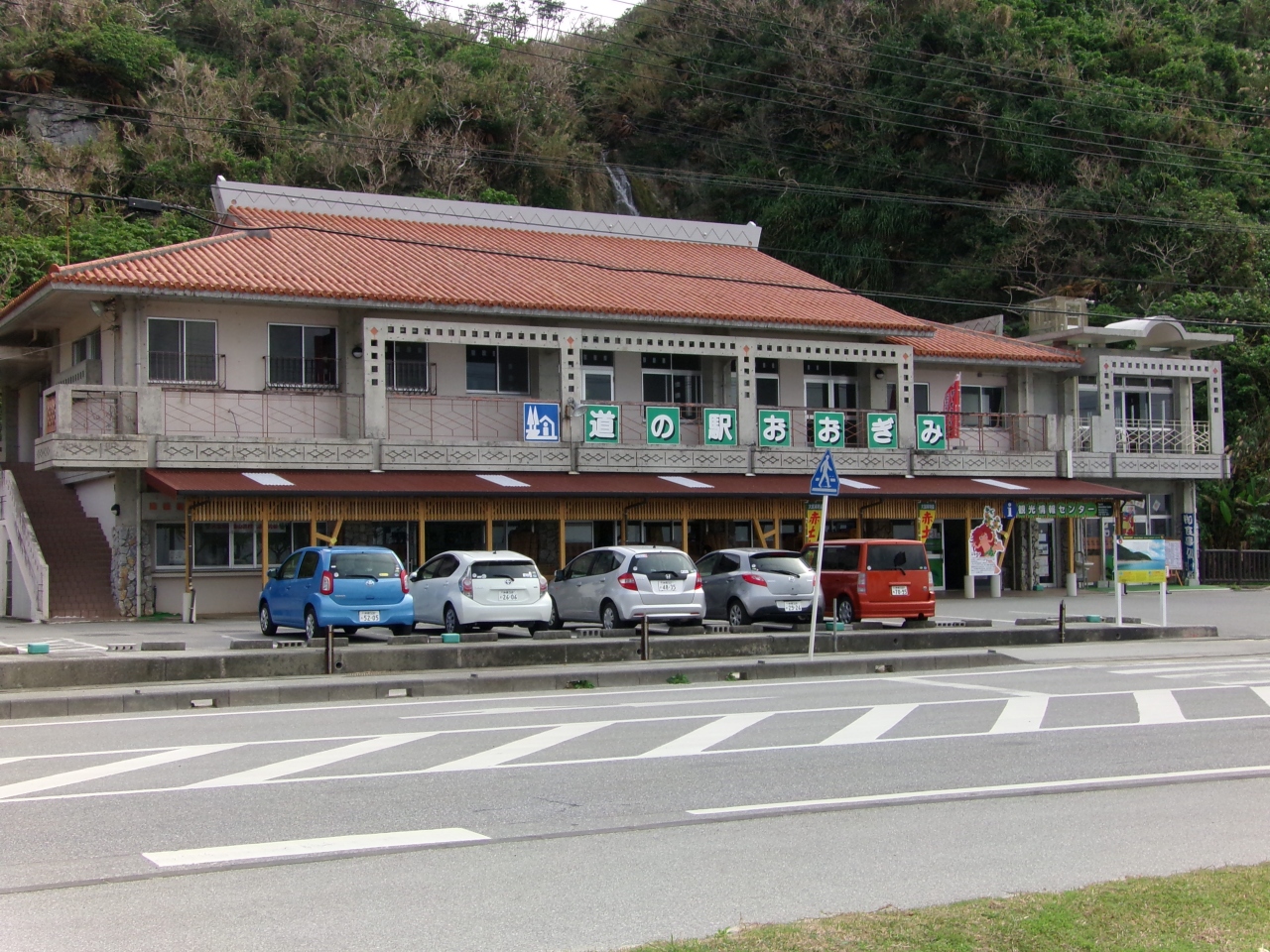国道58号線を北上し、大宜味村に入り塩谷湾を越える橋を通り過ぎた付近にある道の駅です。『道の駅ゆいゆい国頭』がお食事処等も運営し、団体客の受け入れを積極的にやっているのに対して『道の駅おおぎみ』は地元産の農作物や手作りの食品などを並べているに過ぎず、隣り合った道の駅ではあるもののその違いに驚かされます。