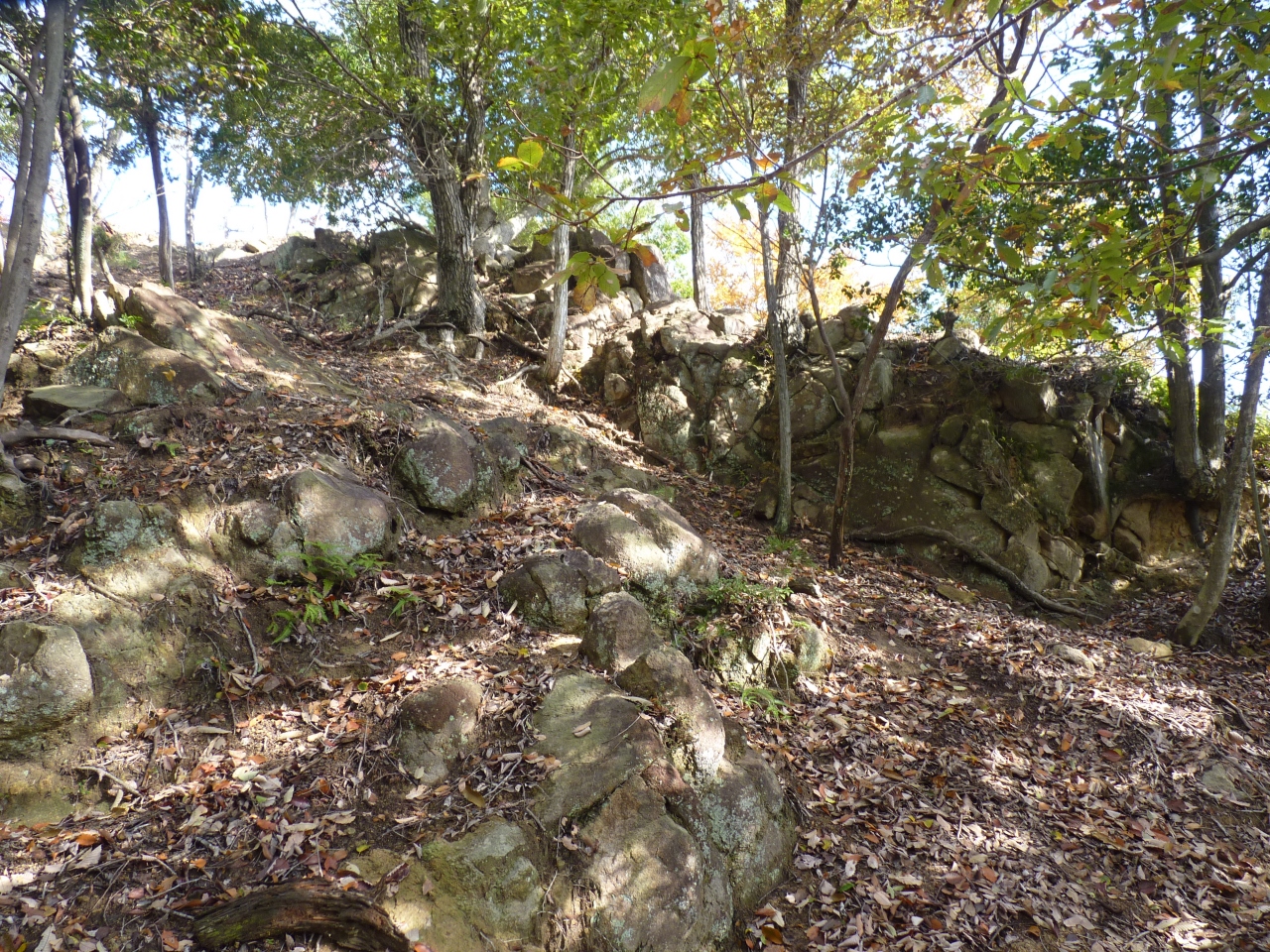 羅漢の里からの登りり口がついている。道は比較的良く整備されとっつきやすいが、購買はかなりあり低い山でも時間が掛かる。山上までに城跡跡が見られ、ゆっくりと時間をかけて登ればよい。頂上は城跡跡の角柱が一本ポツンと建つだけで、各櫓跡の説明が在るだけ。頂上からの眺めは良い。