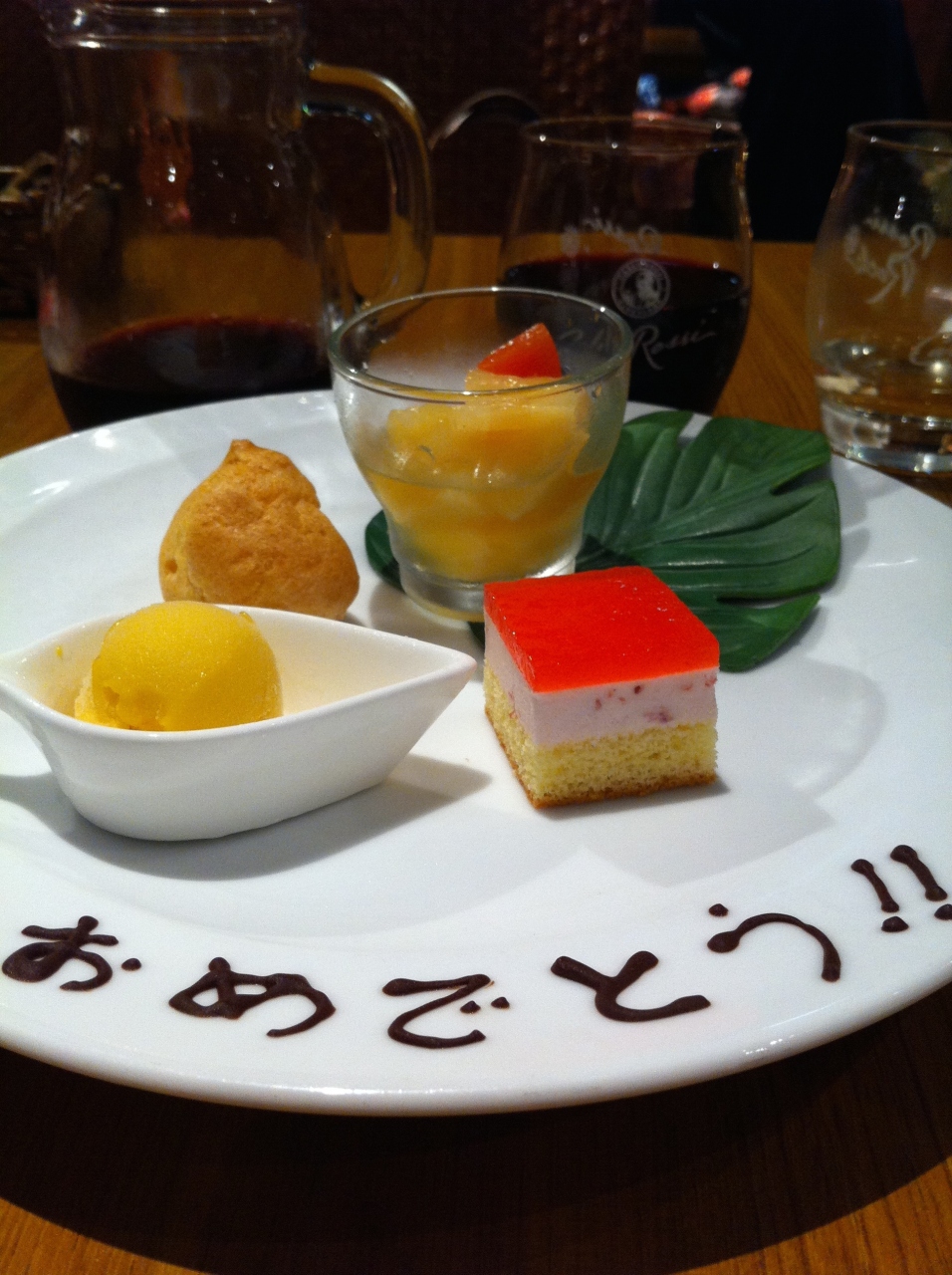 友人からのサプライズで、おめでとうプレートとレイと記念写真をプレゼントしてくれました。