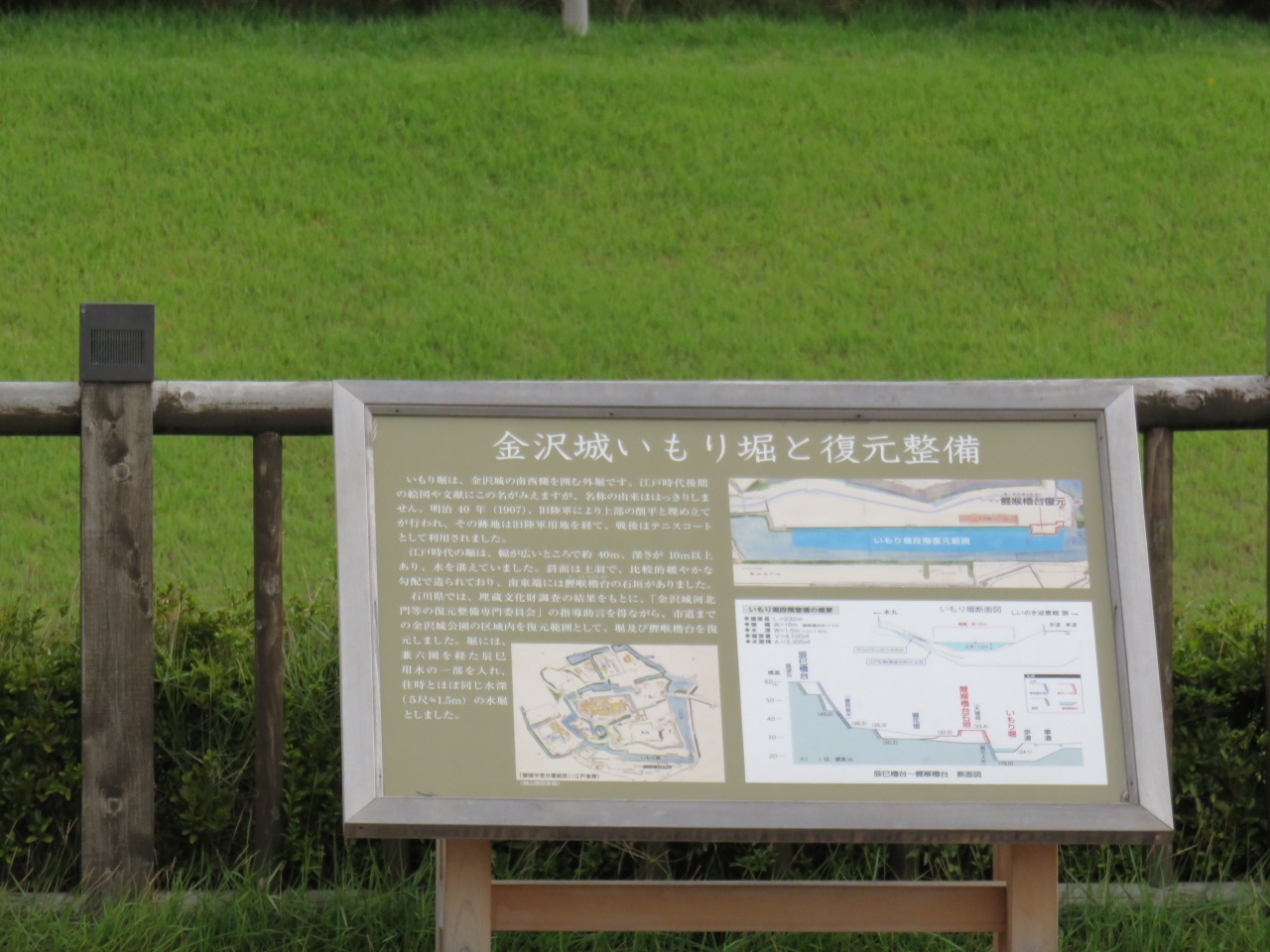 金沢城の南西側を囲む外堀で、江戸時代の堀は幅が広いところで約40m、