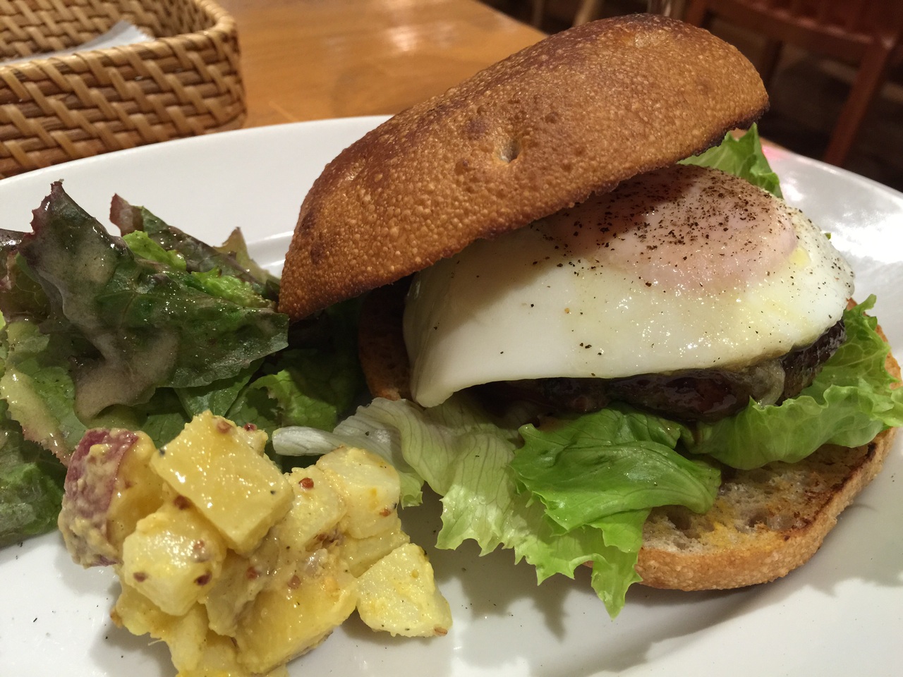 流石にパンも美味しくて、手作りハンバーグも