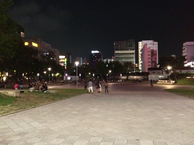 雨の日じゃなければ昼でも夜でも公園内で座ってゆっくりしている人の姿が多いです。
