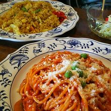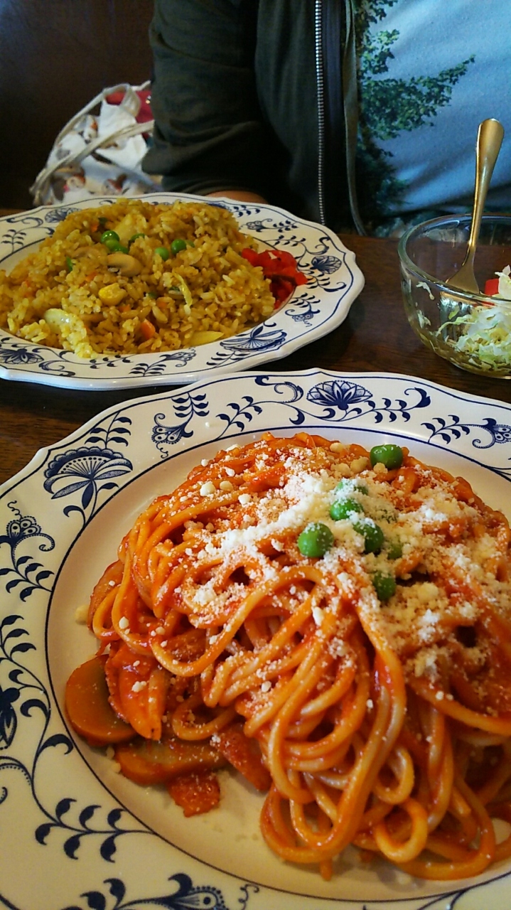 ナポリタンとコーヒーのセットとドライカレーと紅茶のセット