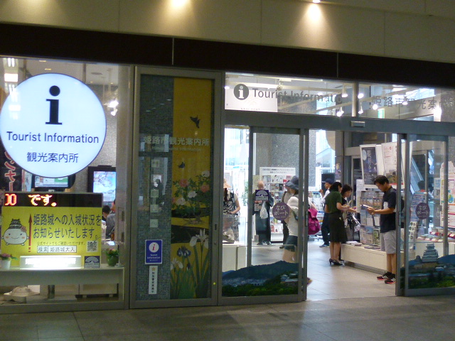 今日は姫路を散策します。いつものようにまずは観光案内所に行きます。JR姫路駅を姫路城方向に出てすぐ左にあります。所内に入って係りの人に姫路城付近を周遊するバスについて質問したら「城周辺観光ループバス」を教えてもらいました。また所内には大きなモニターで近隣の紹介や数多くのパンフレットなどもあります。ご利用くださいね。