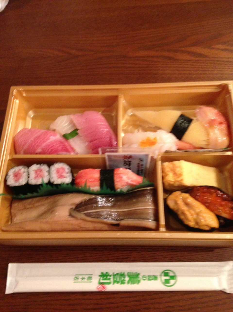 エチカ池袋にある寿司の美登利寿司。立食いと横にテイクアウトを併設しているのですが、寿司のネタの質が良いのでたまに買って帰るのですが、今日はかなり奮発して一人前1580円の寿司をテイクアウトしました。煮穴子一本はとても大きいですが、柔らかく煮てあり口に入れるとトロとろです。他のネタもウニもミョウバン臭くなく少し甘みがあって食べやすいです。