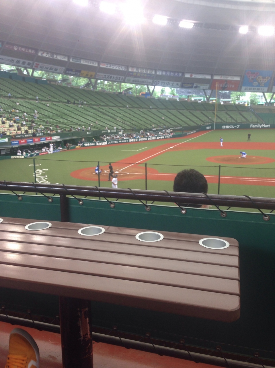 駅前と言う点では電車に乗ってしまえばアクセスが良い球場です。屋根だけで壁がないので、4月はものすごく寒く、夏は風がなくすごく暑い、しかも午後の日は雨もちらほら入ってくる。だけど大好きな球場の1つです。