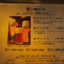 小樽ビールが3種類あってお得に飲むことができました。値段は高く感じますが、その分量が多かったです。
