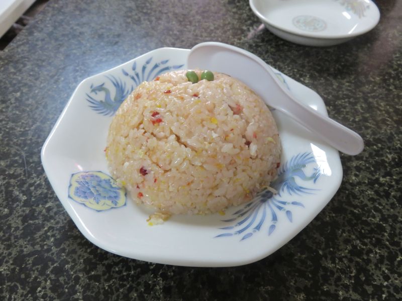 チャーハンはしっとり系だった。味付けは塩味だけでなく、初めての出会う味であった。ちょっと赤見を帯びていた。何の色だろう。