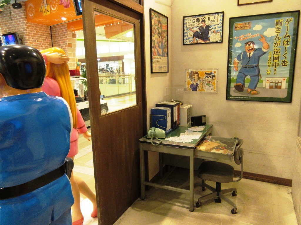 アーケードゲーム中心の施設内には、ファン垂涎の「公園前派出所」が再現されており、両さんの机には「馬券」や「請求書」なども配置。