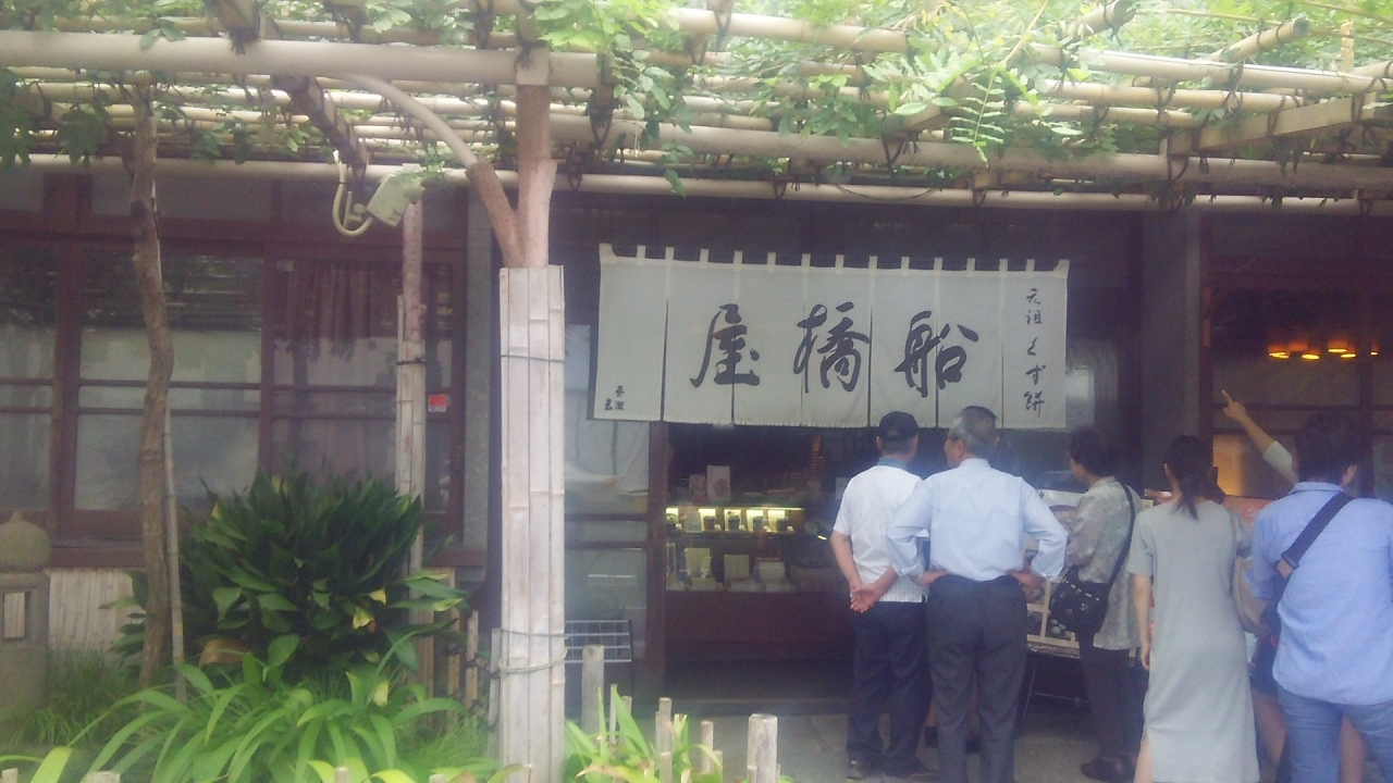 くずもちで有名な船橋屋の本店とのこと。繁忙期には亀戸天神前に売店ができるようだが、ここでも亀戸天神から十分近い。店内で食べる人が行列していたが、持ち帰りはならばずに買えた。食べなれた大田区池上の葛餅とは、ちょっと違いを感じたがとってもおいしい