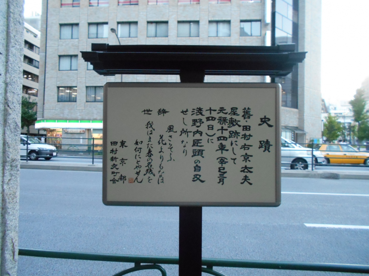 こちらは忠臣蔵の浅野内匠頭が切腹をした最期の場所あそうです。