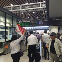 同じ新幹線に乗る人が 同じアクセス電車で駅に到着するので 昼時の時間は改札内の小さなコンビニは昼食を買う人で行列!