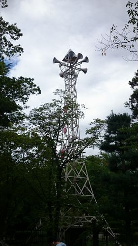 上田城跡北観光駐車場に車を停め、上田城跡へ向かう途中の上田城跡公園内にありました。昭和36年に建設されたものです。朝、昼、夕に鐘が鳴るのではなく、音楽が流れるそうです。実際に音楽は聞くことはできませんでしたが。