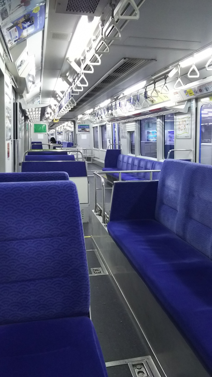 三連休に、羽田空港から旅行に行くために、利用しました。最終便に近いため人は多くありませんでした。車内は、荷物が置ける場所があります。窓から見る夜景は、素敵でしたが、区間快速を利用したためか、揺れますので事前に知っていた方が良いです。