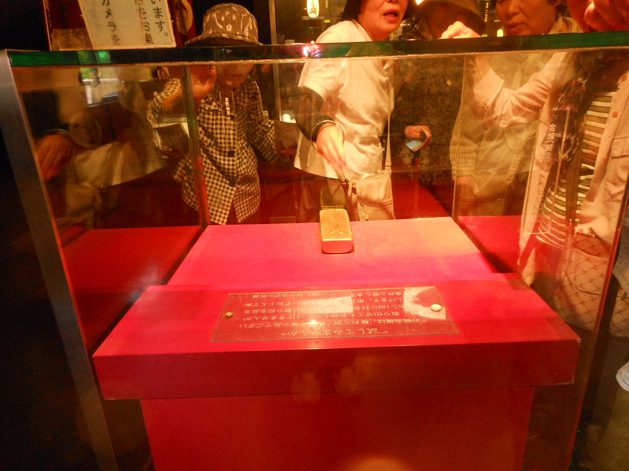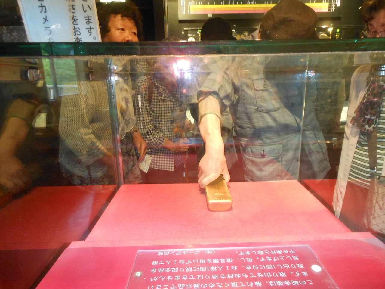 また、触れてその重さを体感できる12.5kgの金塊も展示されており、箱から金塊を取り出せたら記念品がもらえるそうです。私も挑戦してみましたが、重いのなんのって、金塊がこんなに重いとは知りませんでした。