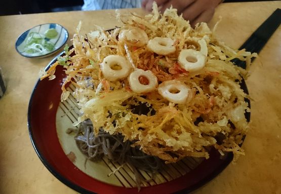 上田城の目の前と立地もよく、お昼時で激混みでした。暑さの中歩きたくなかったので、名前を書いて待つことにしました。隣接するお土産店や2階にある無料休憩所で、交替で涼をとりながら待ちました。意外とキャンセルが多く待ち時間は30分ぐらいでした。「六文銭かき揚げ天ざるそば」と「田舎くるみだれそば」を食しました。かき揚げは大きくサクサクでしたし、初めて食べるくるみだれ、甘みのあるくるみのペーストをそばつゆで割っていただく、意外に合いました。案内された席はレジの近くで、待ちの人たちもいたことから落ち着きませんでしたが、美味しいお蕎麦をいただきました。