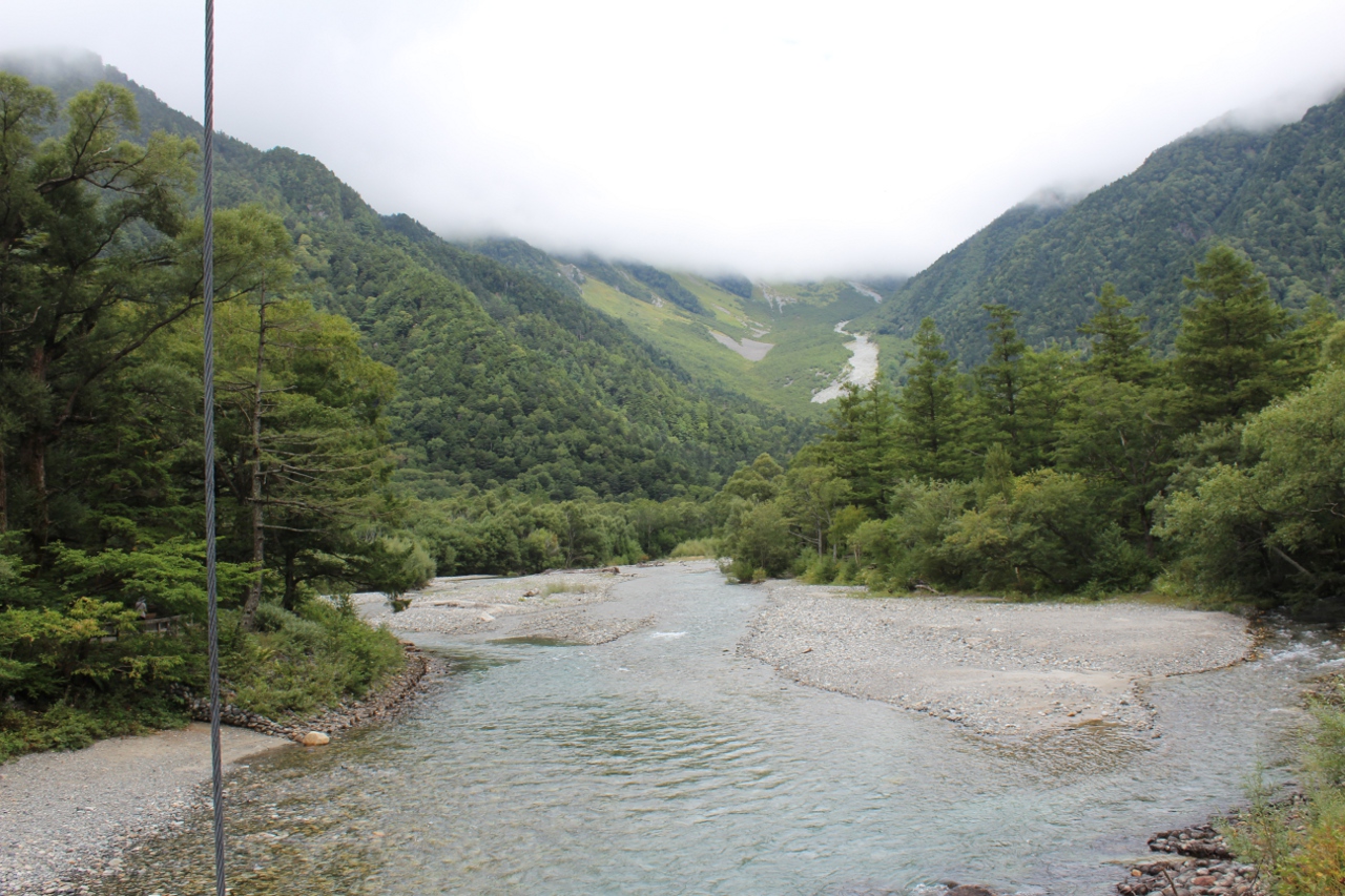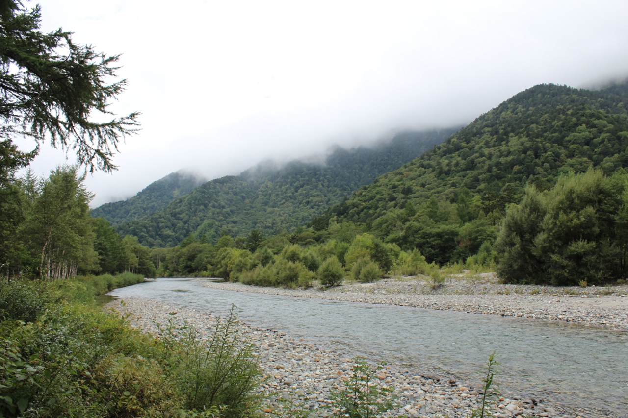 その水の冷たさ、遠景に見える穂高連邦の気高さ、すべてをとって最高の風景で、心から癒されます。