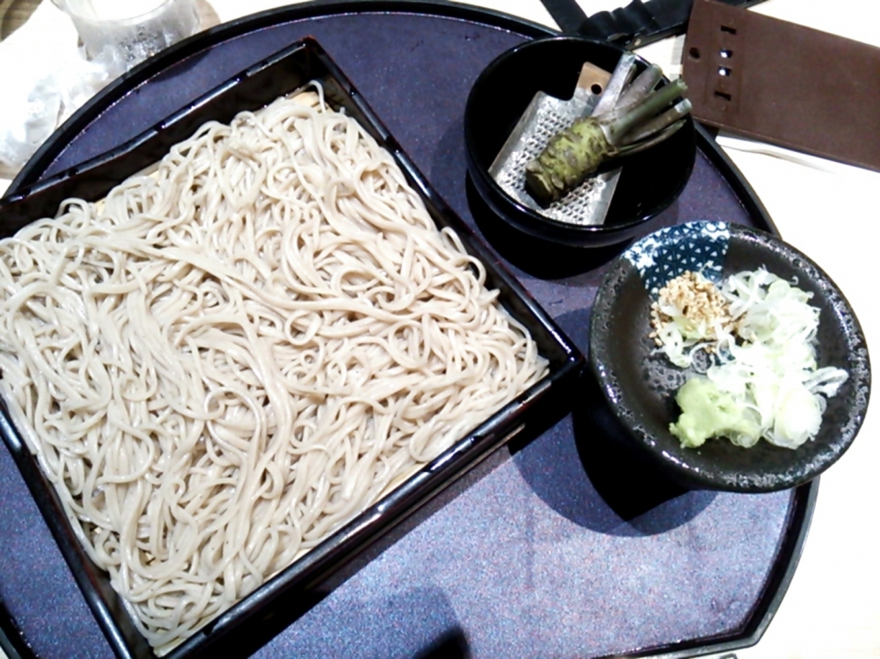 私はここのバラちらしが大好きで、ついついいつも注文してしまうのですが、お蕎麦も美味しいです。生わさびがついていました♪