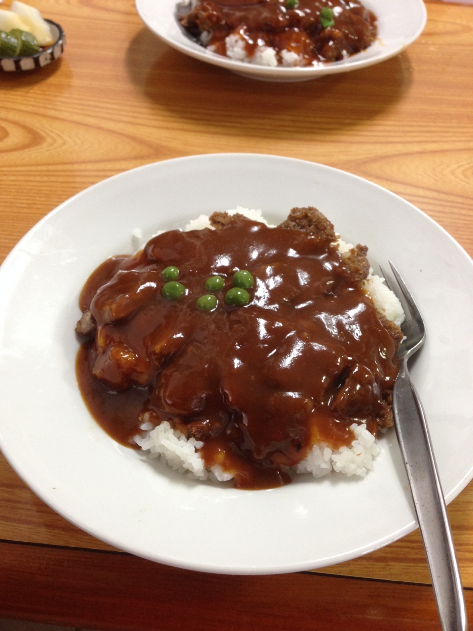 ガイドブックには必ず出ているお店です。店構えは予想以上に古く、照明も青暗い?感じで田舎のおばあちゃん家を思い出しました。肉じゃがとカツ丼が売りですが、カツ丼だけいただきました。付け合わせに出ていた漬物が非常に美味しく、デミグラスソースのカツ丼にぴったりでした。