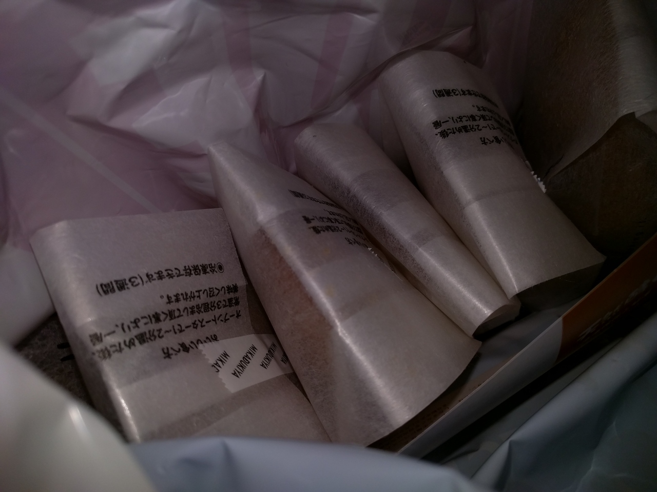 「三日月屋 福岡空港店」は福岡空港の国内線第2ターミナルビルにあった。改装工事中のため、この店は以前と違う場所で、出発口に近かった。クロワッサンは全種類(この時期ある分)並んでいた。ちょい高めだが、一個でも満足出来るしうまいクロワッサン。博多土産にした。