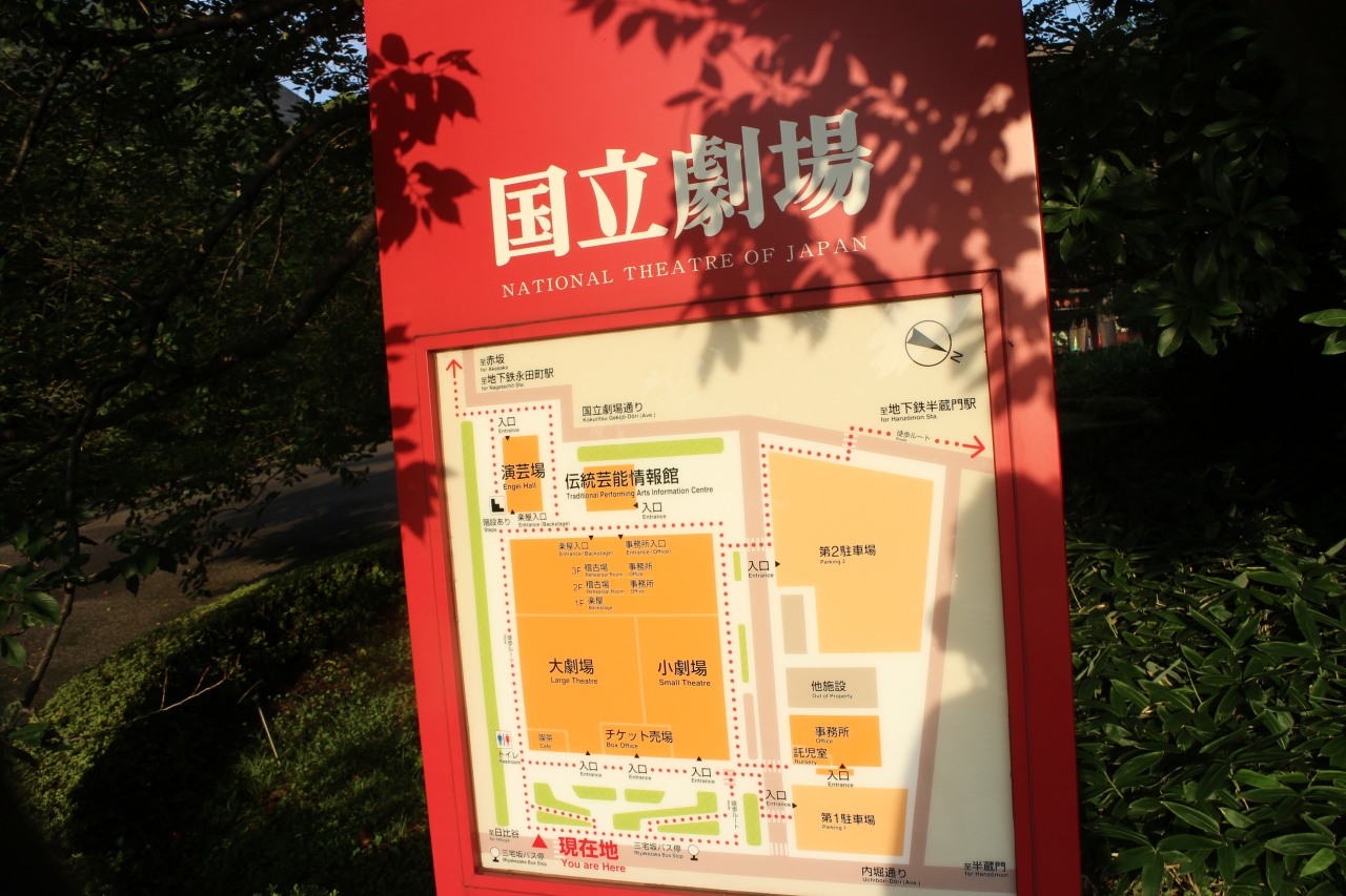 江戸城西側桜田濠沿いを走る内堀通りに面した三宅坂バス停前にある国立の芸能劇場です。