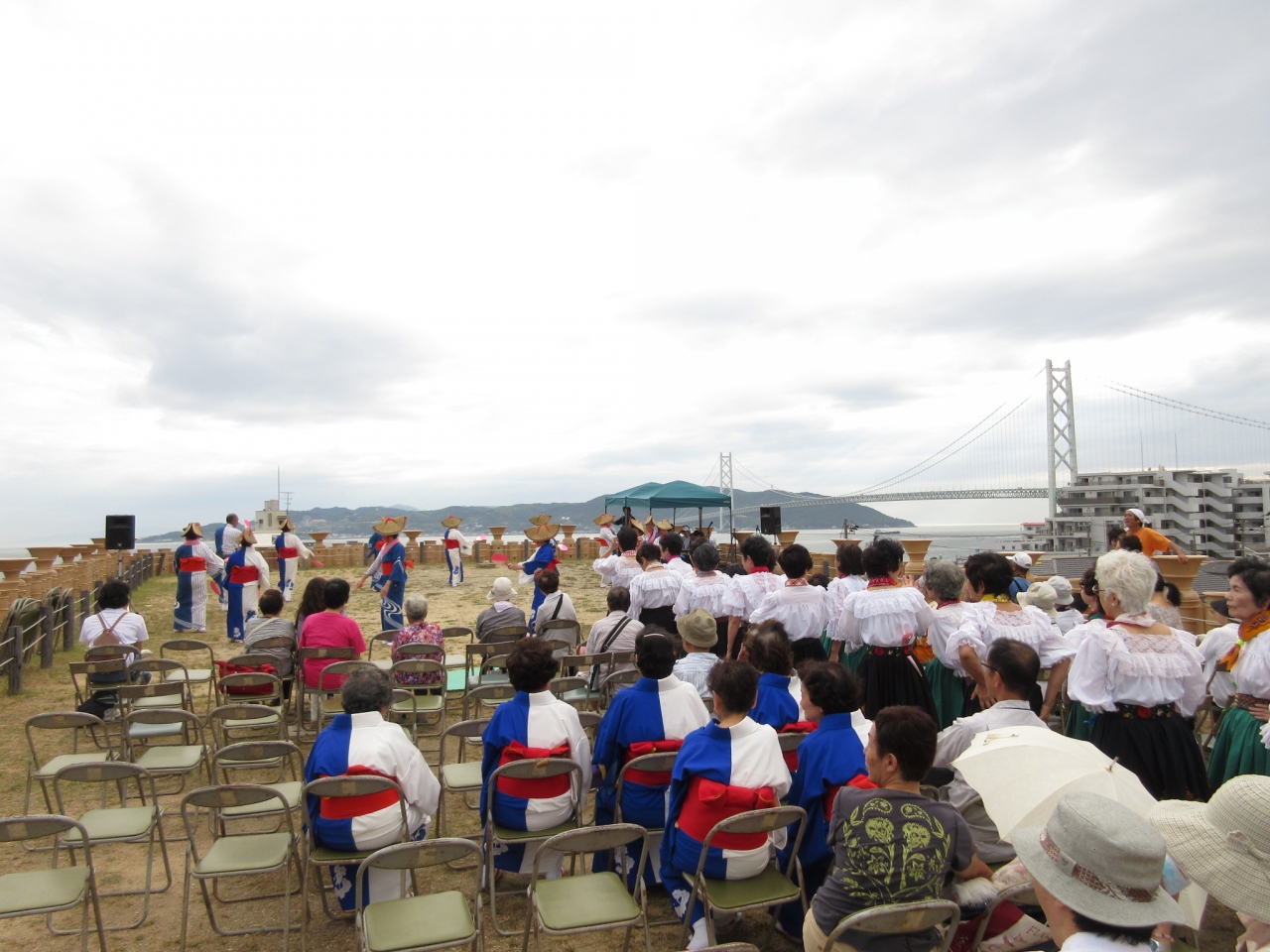 しかも訪れた9/3は「古墳から明石海峡大橋を見よう!」みたいなイベントが開催中で、古墳の上で、歌に踊りに太鼓など、騒がしく、賑やかにやっていましたw