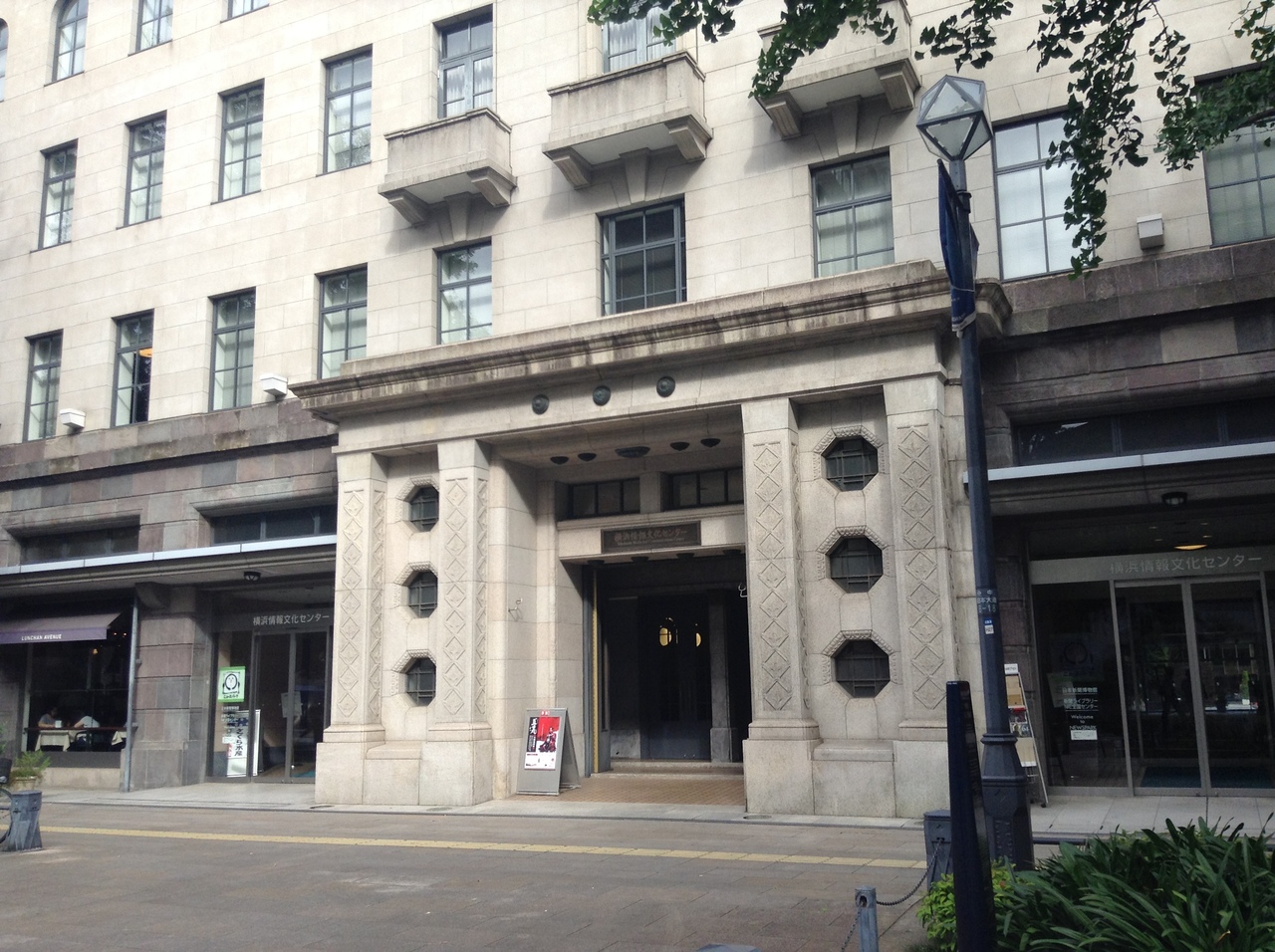 日本大通りにある横浜商工奨励館は、関東大震災後、商品陳列所の設置を目的として1929年に建造されました。今は元の外観を残しながら、12階だてのオフィスビル、横浜市の情報文化センターとして新聞博物館などがはいっています。オフィスビルは目立たないように、作られていて、日大大通りからは、昔の面影を止めて見えます。日大大通りは戦災もくぐり抜けた建物が残っています。