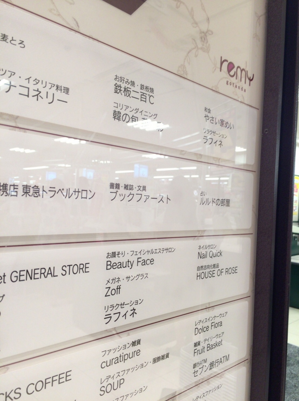 五反田駅に直結しているショッピングビルです。一番上の階にはレストランがいくつか入っていて、帰りに食べて帰れる場所があり便利です。本屋や雑貨屋、日用品、ネイルサロンなど一通りのお店は入っているので助かります。下の階には食料品のスーパーもあります。