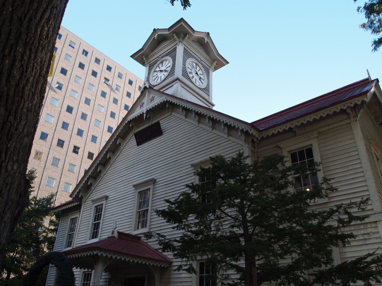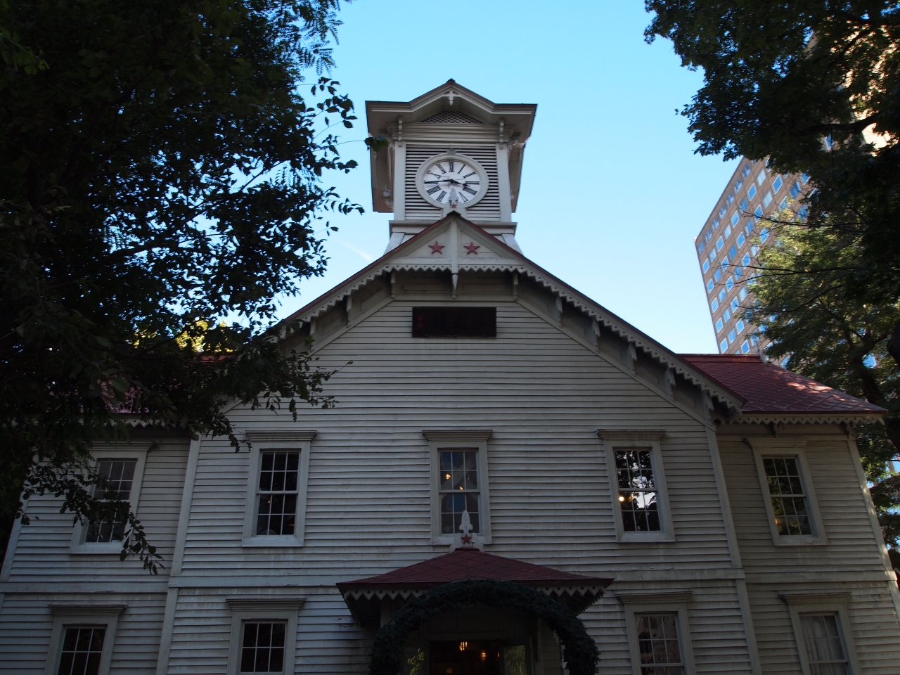 札幌のシンボル、時計台です。大きな木々に囲まれて建っています。右斜め前に、記念撮影用の台も造られています。明治11年に建てられた国内最古の塔時計だそうです。赤い五稜星が印象的でした。建物内は順路に従って行けば十分です。ショップにも立ち寄ってください。