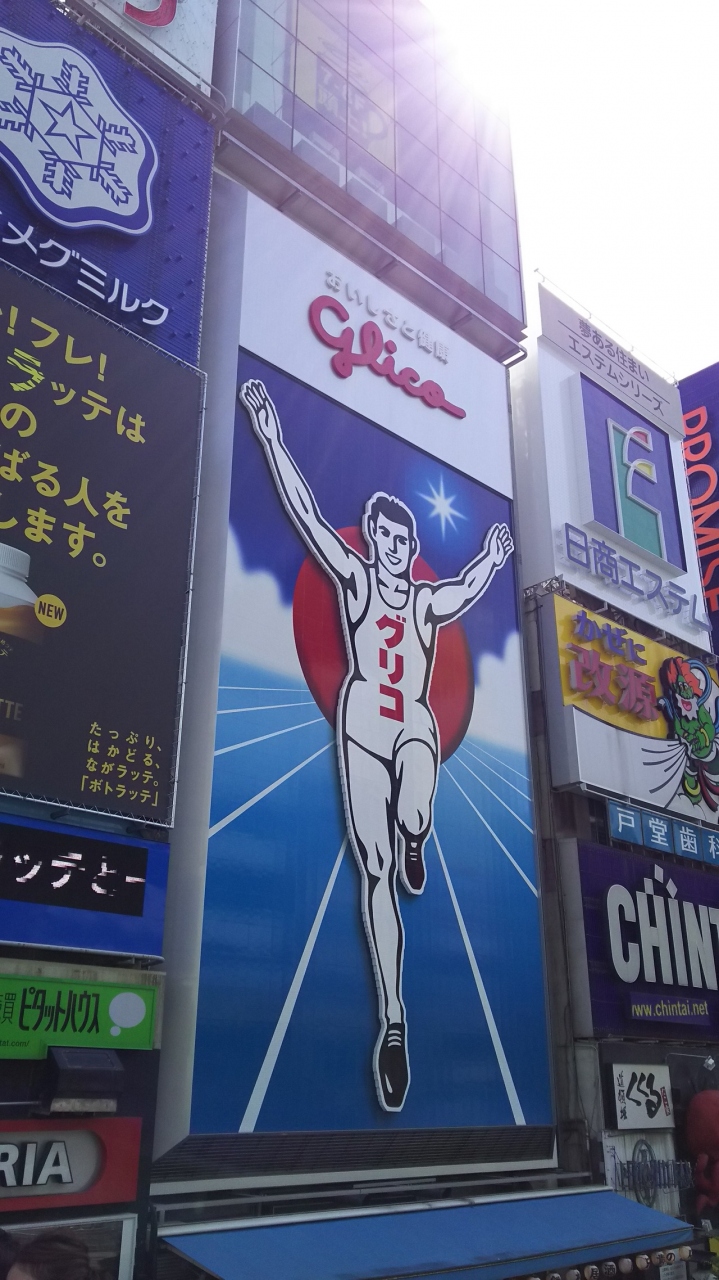 グリコの看板が目印で、いつも観光客で賑わっています。グリコの看板をバックにグリコのポーズで記念写真を撮るのが定番です。