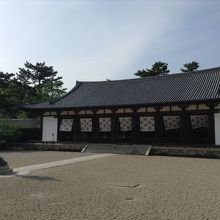 五重塔と金堂を囲む回廊につながる大講堂。大講堂内も入って拝観できます。現存するものは、平安時代の再建されたものですが、それでも1000年以上の時が経ちます。立派な薬師三尊像、四天王像が安置されています。大講堂からは五重塔と金堂がよく見えるスポットの一つです。