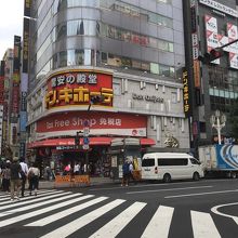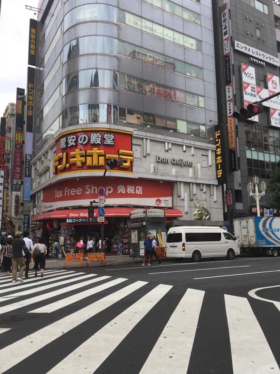 新宿の東口を出てTOHOシネマズに行く途中にある大型のディスカウントショップのドンキホーテです。週末の日中に伺いましたがたくさんの人でかなり混んでいました。大型のお店なのですが品揃え重視のためか通路が狭くすれ違うのもやっとという感じです。