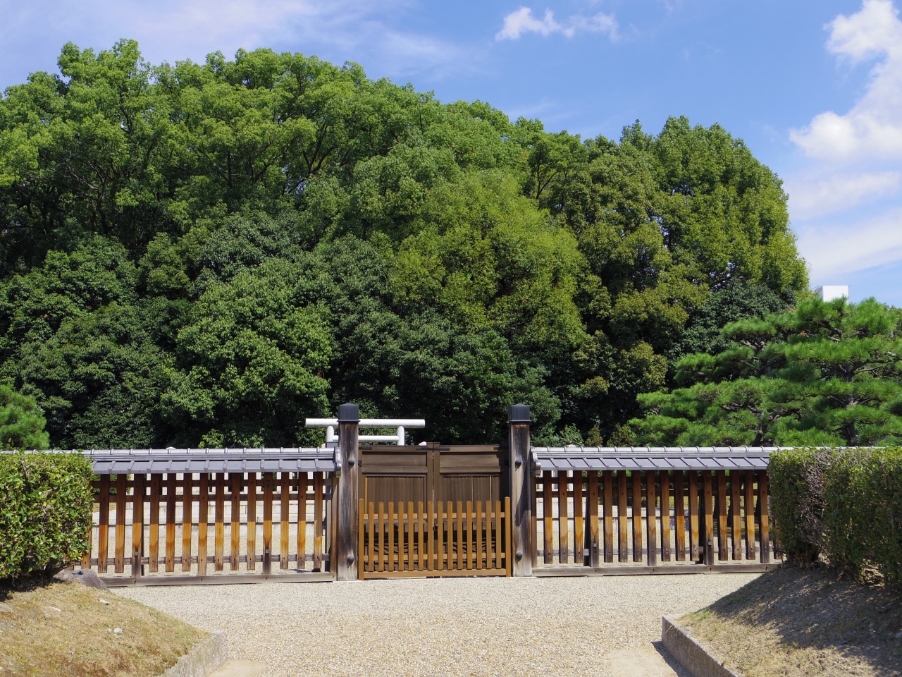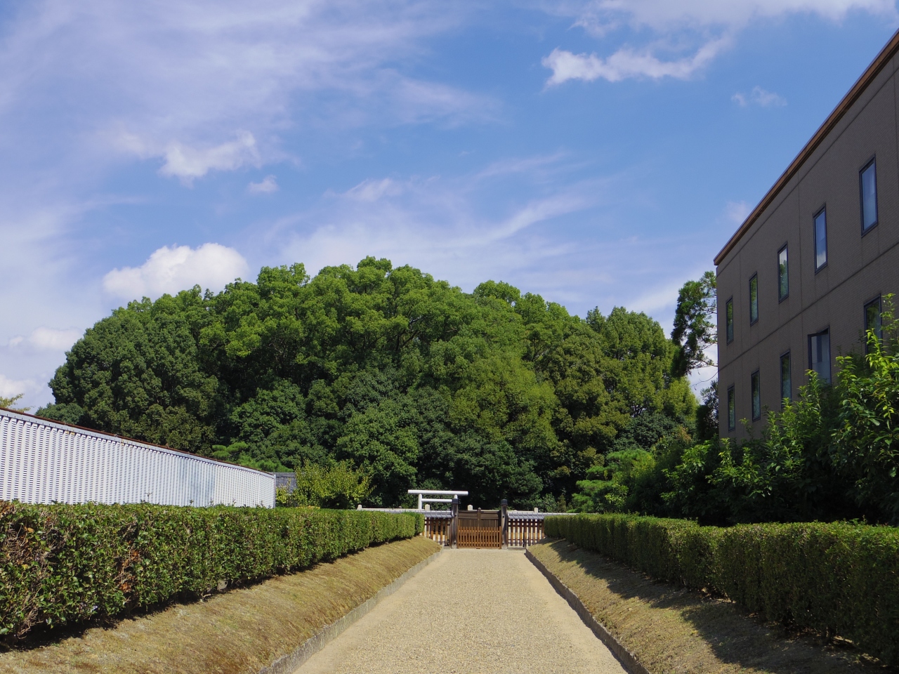 その前には鳥居があって、陵であることを示して、厳かな雰囲気はありましたが、墳丘長がおよそ100mある前方後円墳の全体像は当然ながらわかりませんでした。