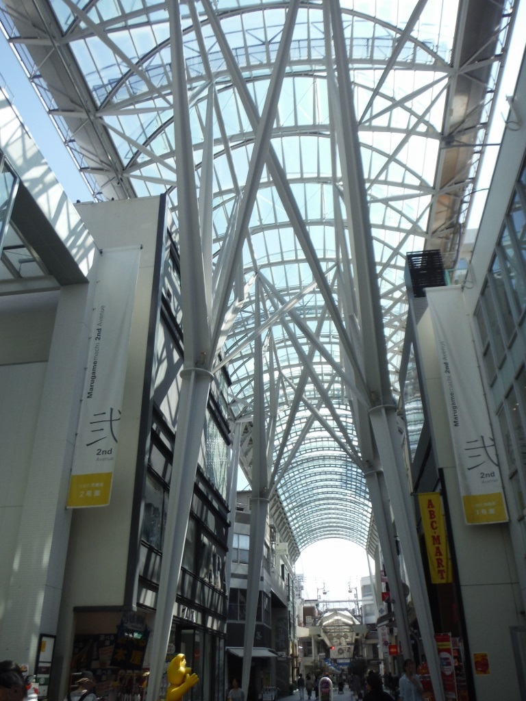 日本有数の長さの高松の商店街はいくつかの商店街がつながっています。丸亀町商店街は三越からもすぐ近くで、天井も高く、白い鉄骨のアーケードが近代的なオシャレな感じのする商店街です。全国大手チェーン店だけではなく、香川や高松の以前からある和菓子店もあります。