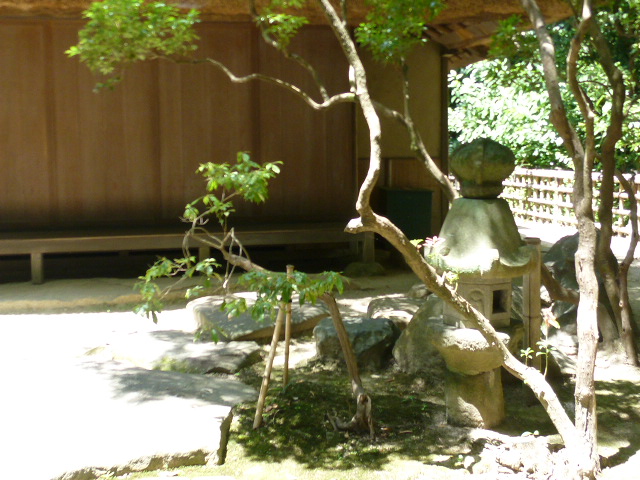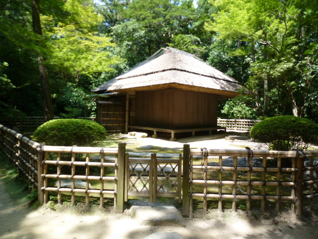 今日は日本三名園のひとつである岡山後楽園を散策しています。南門から入って左方向へ二色が岡を通ってここ「茂松庵」にきましたが、この辺も緑が多く野鳥の声も聞こえますね。1690年頃建てられた木造建築の茶室ですが、当初は花葉軒と呼ばれ藩主との茶会が行われていたようです。明治に茂松庵となり、その後戦火焼失し昭和27年に再建されています。自然あふれる場所にあります野鳥の鳴き声を聞きながら散策しましょう。