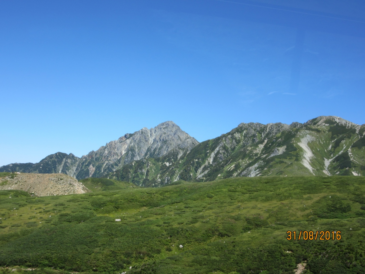 標高2,450メートルのアルペンルート最高地点で、剱岳、富士ノ折立、大汝山、雄山の山々・ミクリガ池・みどりが池の景観は素晴らしいの一言で富山駅から2時間以上、列車・ケーブルカー・バスを乗り継いで来た価値は十分にあった。