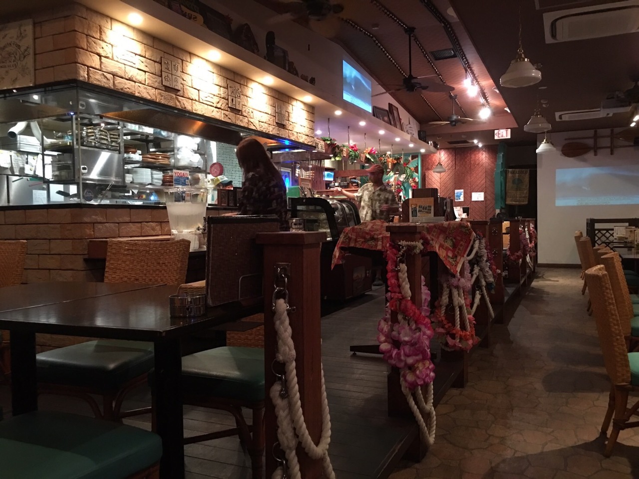 ビューおの直ぐ隣りの建物の二階にあります。入店すると店員さんの明るくアローハと言う元気な声が迎えてくれます。食べ物種類は豊富でハワイをイメージした料理が中心です。飲み物の種類もとても多く迷ってしまいます。ハンバーガーを頂きましたが、パンがほんのり甘くとても美味しかったです。