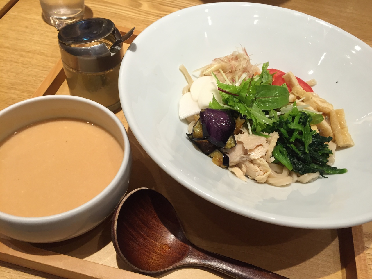 メニューは昔ながらの和風ものもありますが、スパゲティの味を再現したような、洋風のものもあります(*^_^*) 私のオススメは、野菜とクリームトマトのつけうどん! つけ麺のような間隔で食べられます。