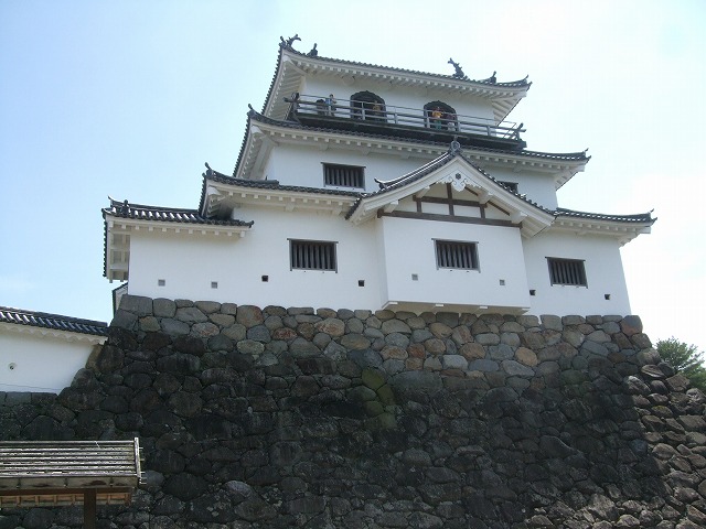 公園内には、修復された白石城天守閣(三階櫓)や大手一ノ御門がそびえていて、白壁と銀色の屋根瓦が美しいです。