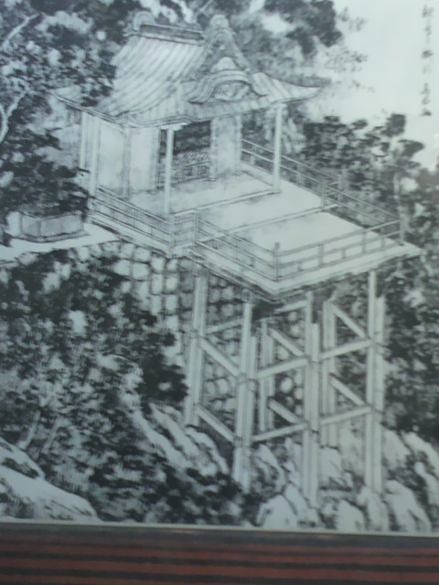 清水観音堂は、高さ20mほどの小高い山の上に建てられ、下を望むと高い崖のようになり、あたかも清水の舞台から飛び降りるような気持になるように仕組んであります。