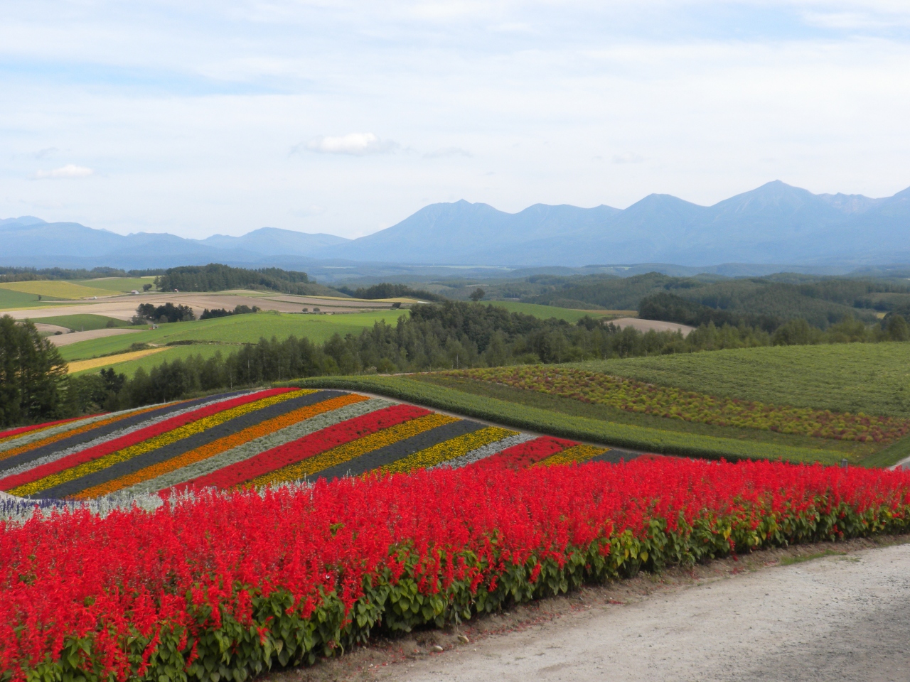 斜面に広がるお花のパッチワーク 美瑛「四季彩の丘」