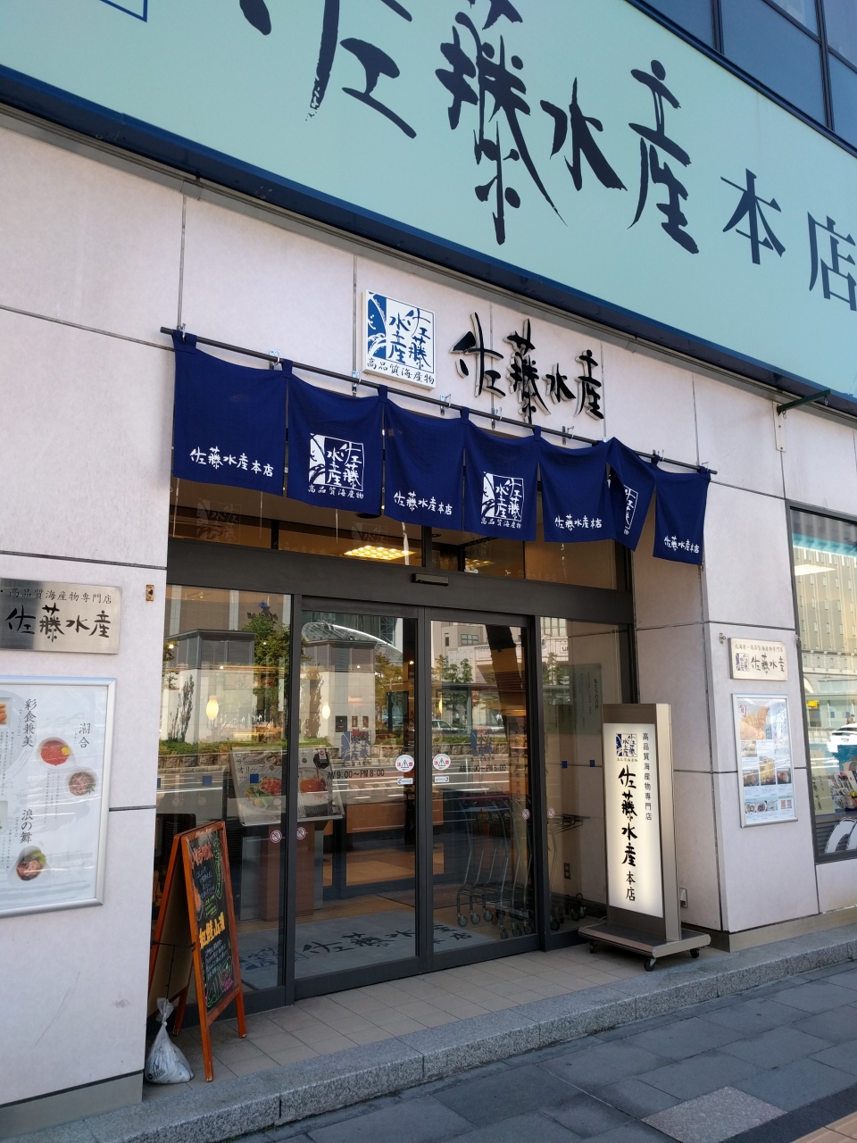 JR札幌駅南口から徒歩2分、北5条手稲通沿いに“佐藤水産 本店”があります。