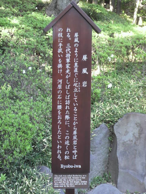 小石川後楽園の屏風岩は、渡月橋の傍にある屏風のような大きな岩です。