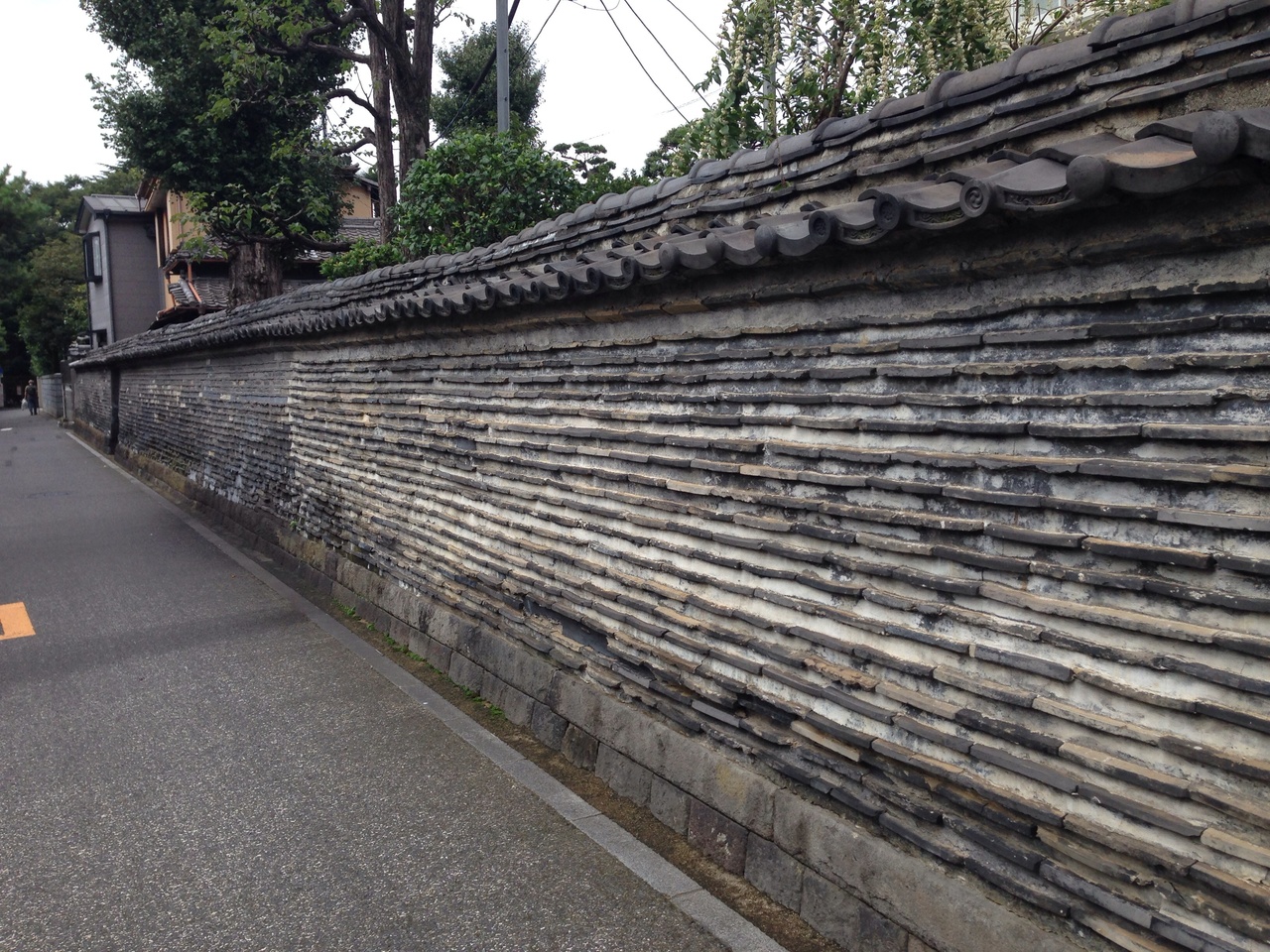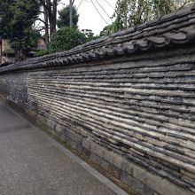 築地壁が有名でそれをみたくて訪れました。お寺の入り口から築地壁は離れていて見付けるのに少し時間がかかりました。細い道にその壁はあり何とも言えない雰囲気、土壁に瓦がしかれミルフィーユのよう。有形文化財であるのも頷けます。