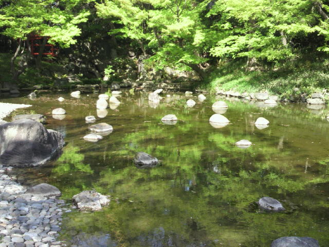 小石川後楽園の大堰川の名前は、京都の嵐山の下を流れる大堰川から名づけられました。