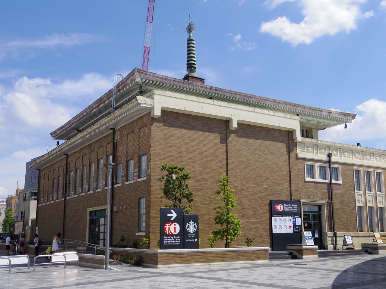 JR奈良駅前に降り立つと、寺院風の風格ある建物があり、近づいてみると、観光案内所でした。