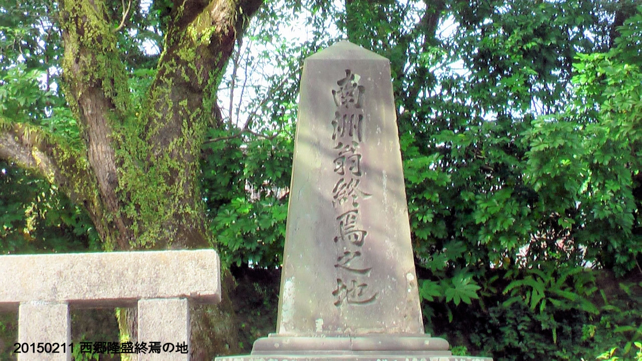 西郷洞窟から少し下った、鹿児島本線の踏切沿いの一角に石碑が建っています。この場所で、遠く皇居を伏し拝みながら別府晋介に解釈された西郷隆盛。維新の英雄は最後に何を思ったのでしょうか。歴史的人物の終焉地としては、踏切が近すぎて些か落ち着けないのが痛いです。