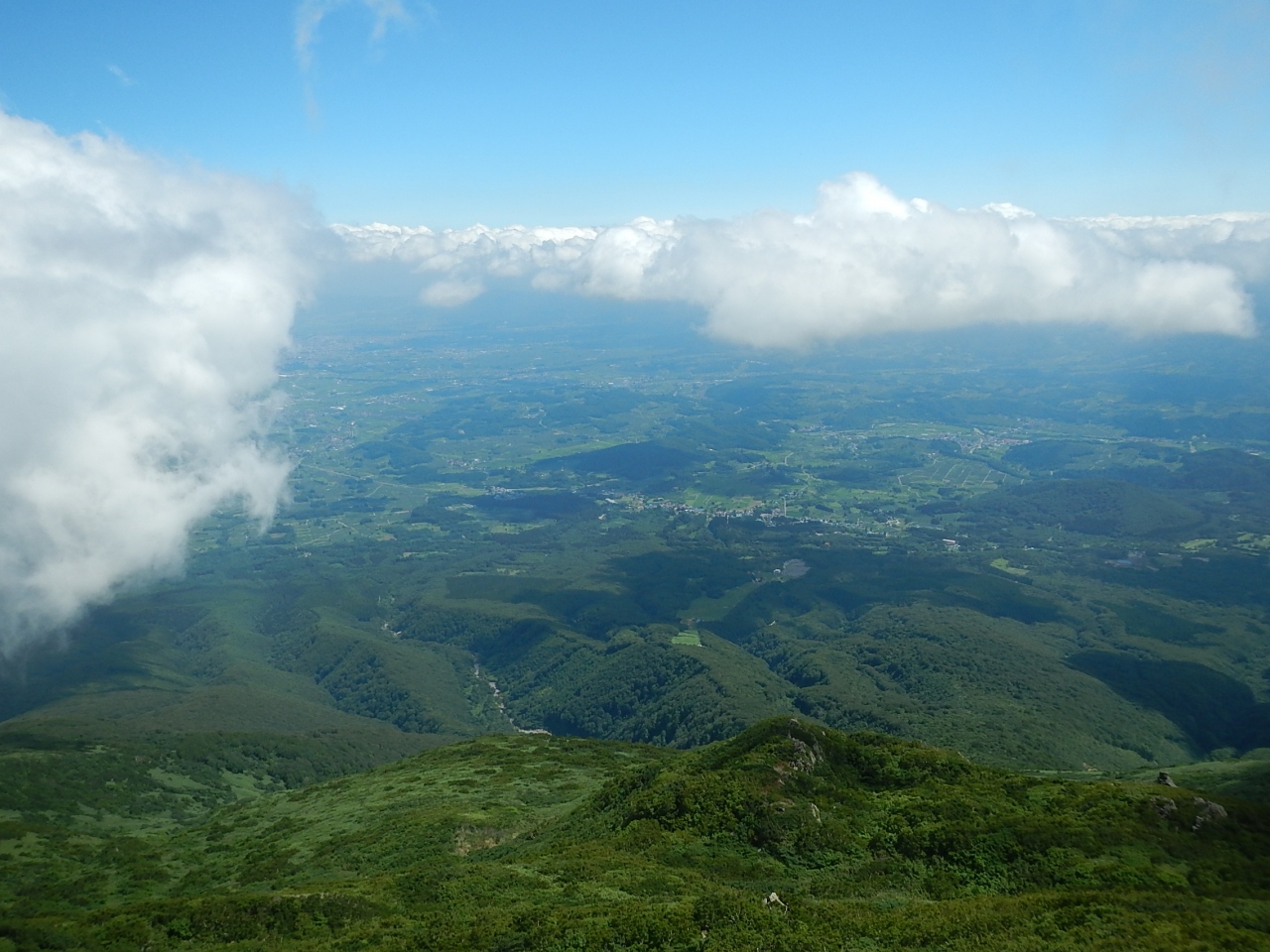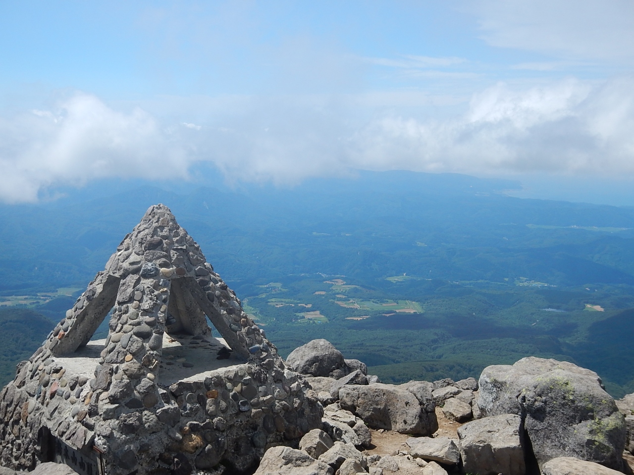 頂上付近に鳥ノ海とか言う沼があり名前通りの岩山を登りきると、ピラミッド型の標識の建つ頂上に着いて360°大パノラマを満喫できたのはもはや言うまでもない。
