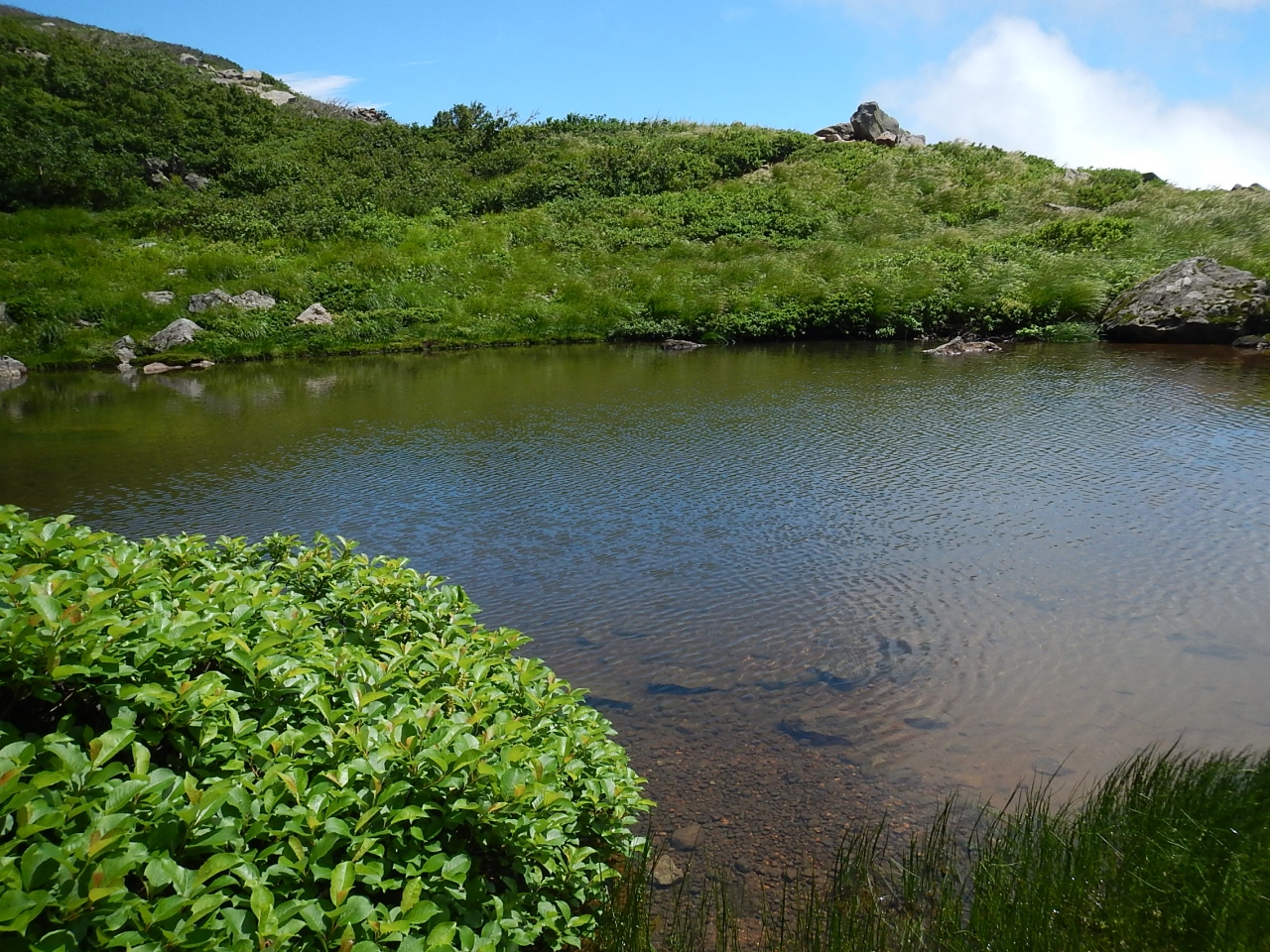 独立峰なのに涸沢があって手を使わないと進めない箇所があって面倒だったが、沢の源頭に冷たい水場があり旨い水を存分に飲めた。