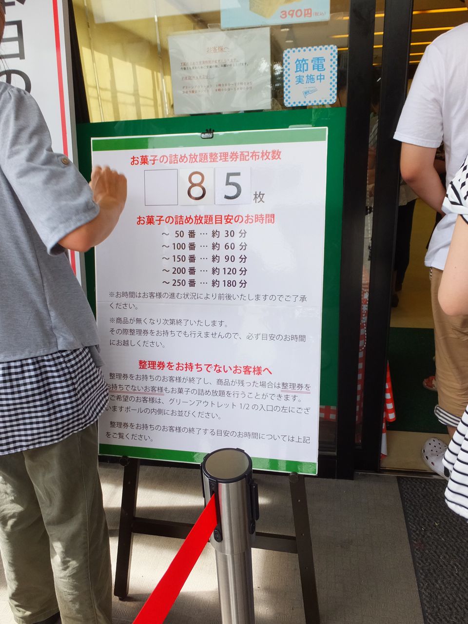 詰め放題の信玄餅の数は日によって違うので、整理券配布枚数も違えば、参加可能な人数も変わります。
